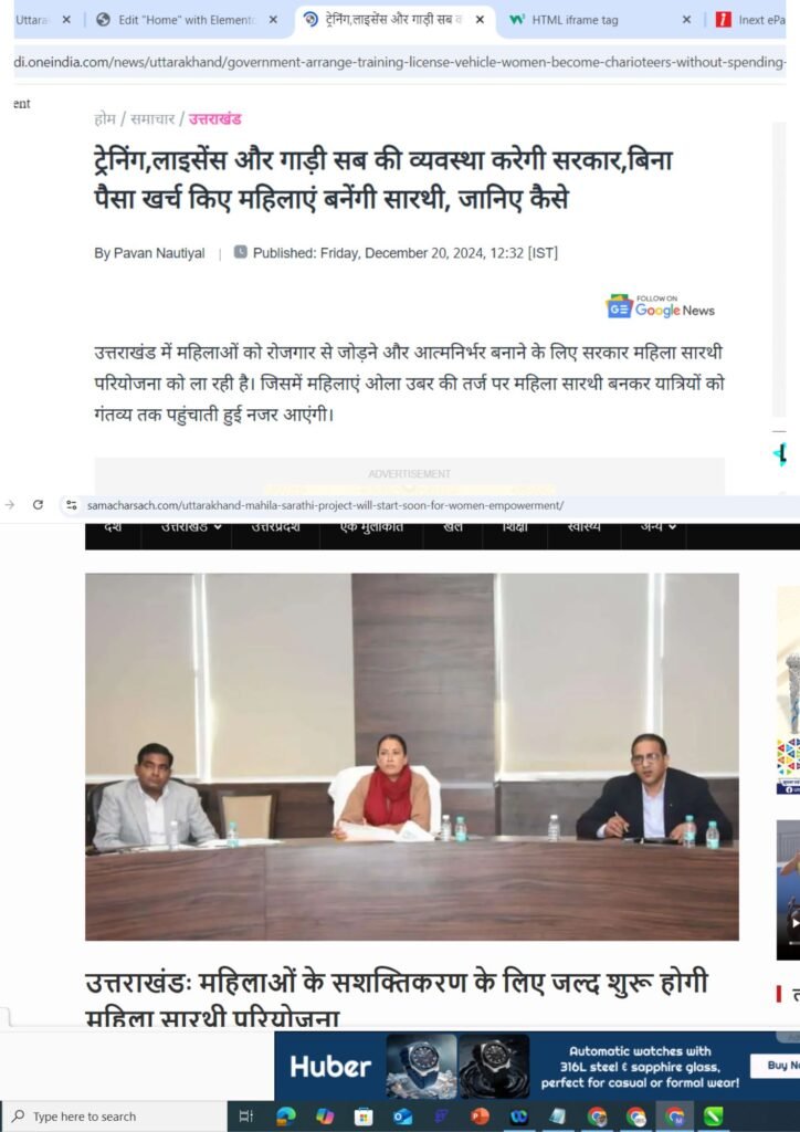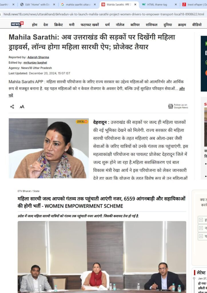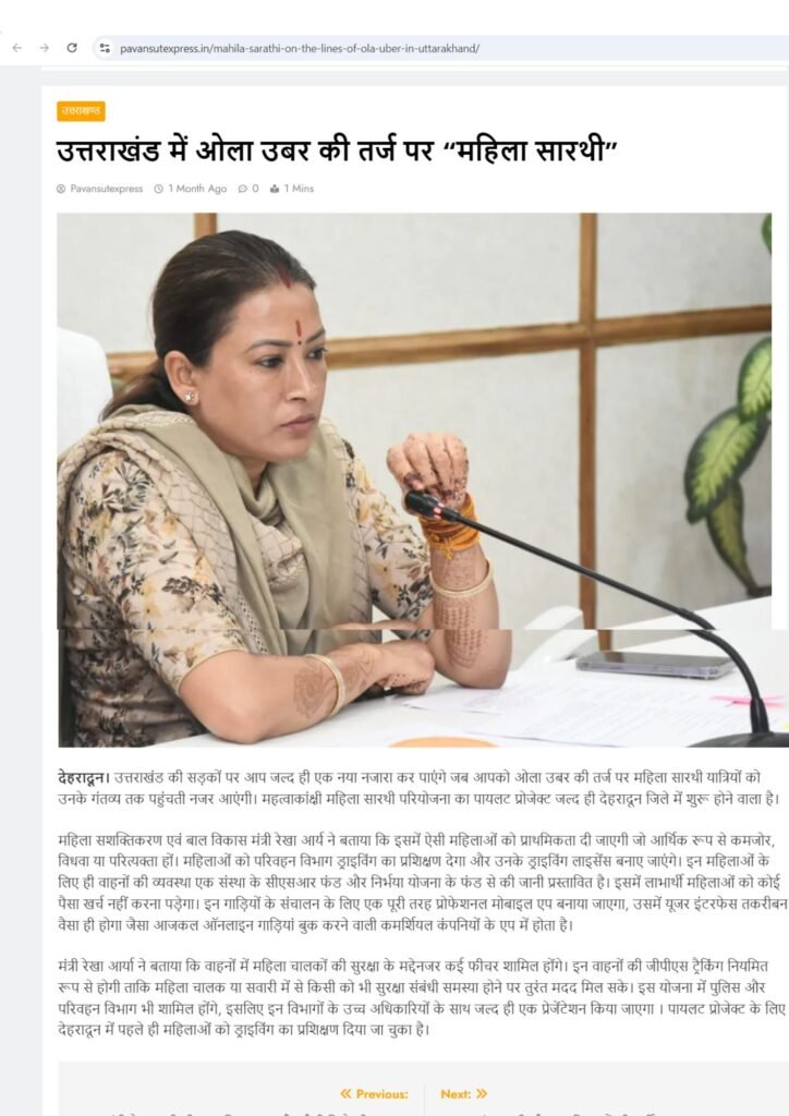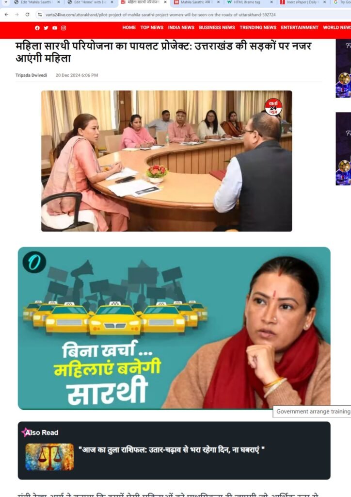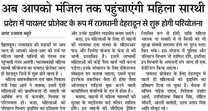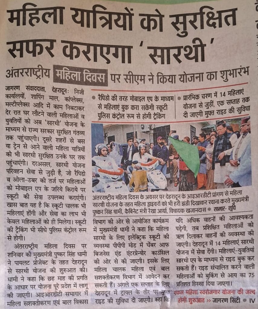 Mahila Saarthi Inaugurated by Hon’ble Chief Minister Shri Pushkar Singh Dhami We are proud to announce the grand inauguration of the Mahila Saarthi initiative by